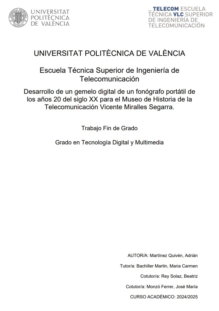 Desarrollo de un gemelo digital de un gramófono portátil de los años 20 del siglo XX para el Museo de Historia de la Telecomunicación Vicente Miralles Segarra