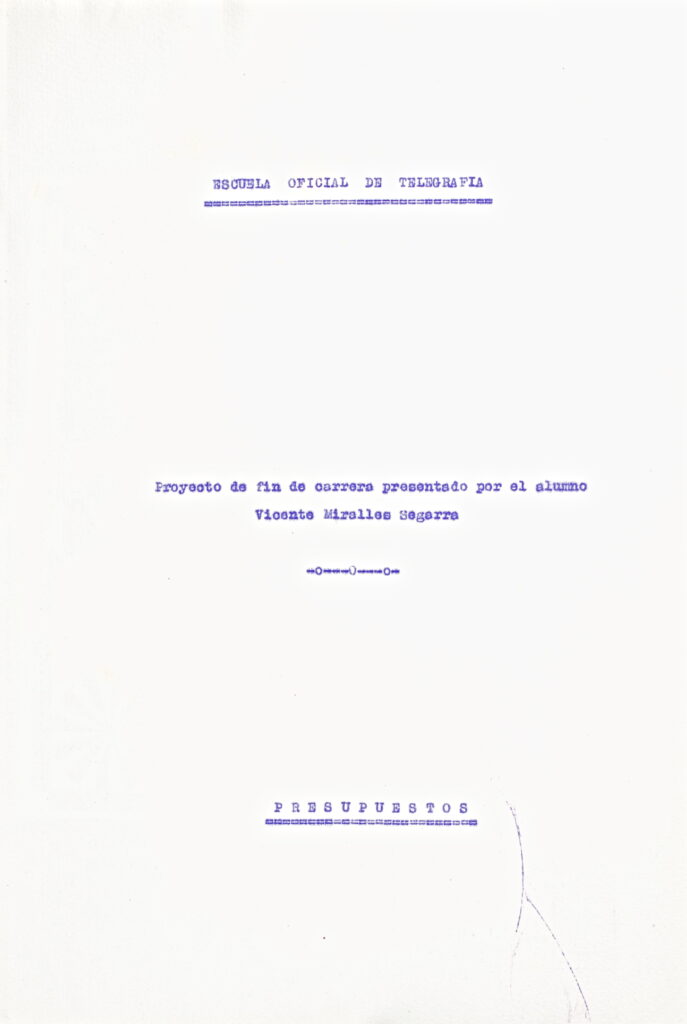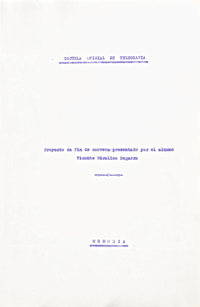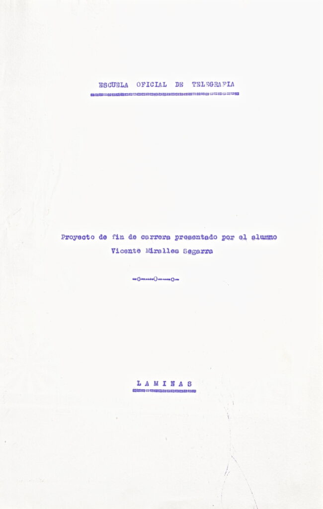 El Museo tiene el gusto de presentaros el Proyecto Fin de Carrera de Vicente Miralles Segarra, defendido en 1926, que tiene por título «Proyecto para la instalación de una nueva estación telegráfica, en una capital de primer orden». Este trabajo se divide en tres tomos: memoria, presupuestos y láminas, conteniendo los planos de la instalación.
