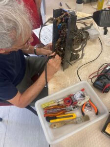 Esta semana nos trasladamos al Taller de Restauración del Fondo de Arte y Patrimonio de la UPV, desde donde compartimos con orgullo un nuevo avance: nuestro compañero y colaborador del Museo, Luis Sempere, profesor de la ETSIT, ha conseguido reparar y poner en funcionamiento el circuito electrónico de una radio DANA (cuya carcasa, perillas y panel frontal, han sido previamente restauradas).